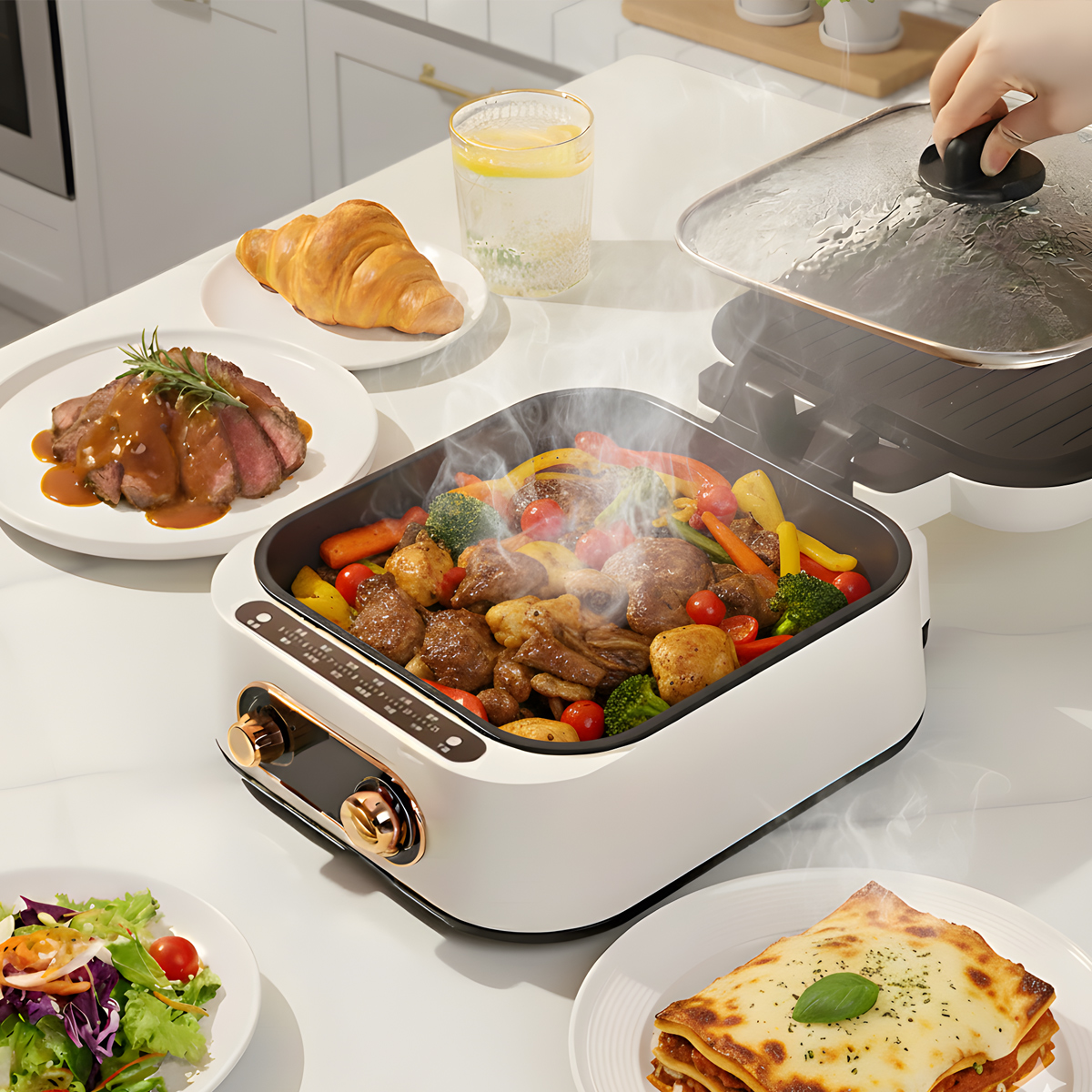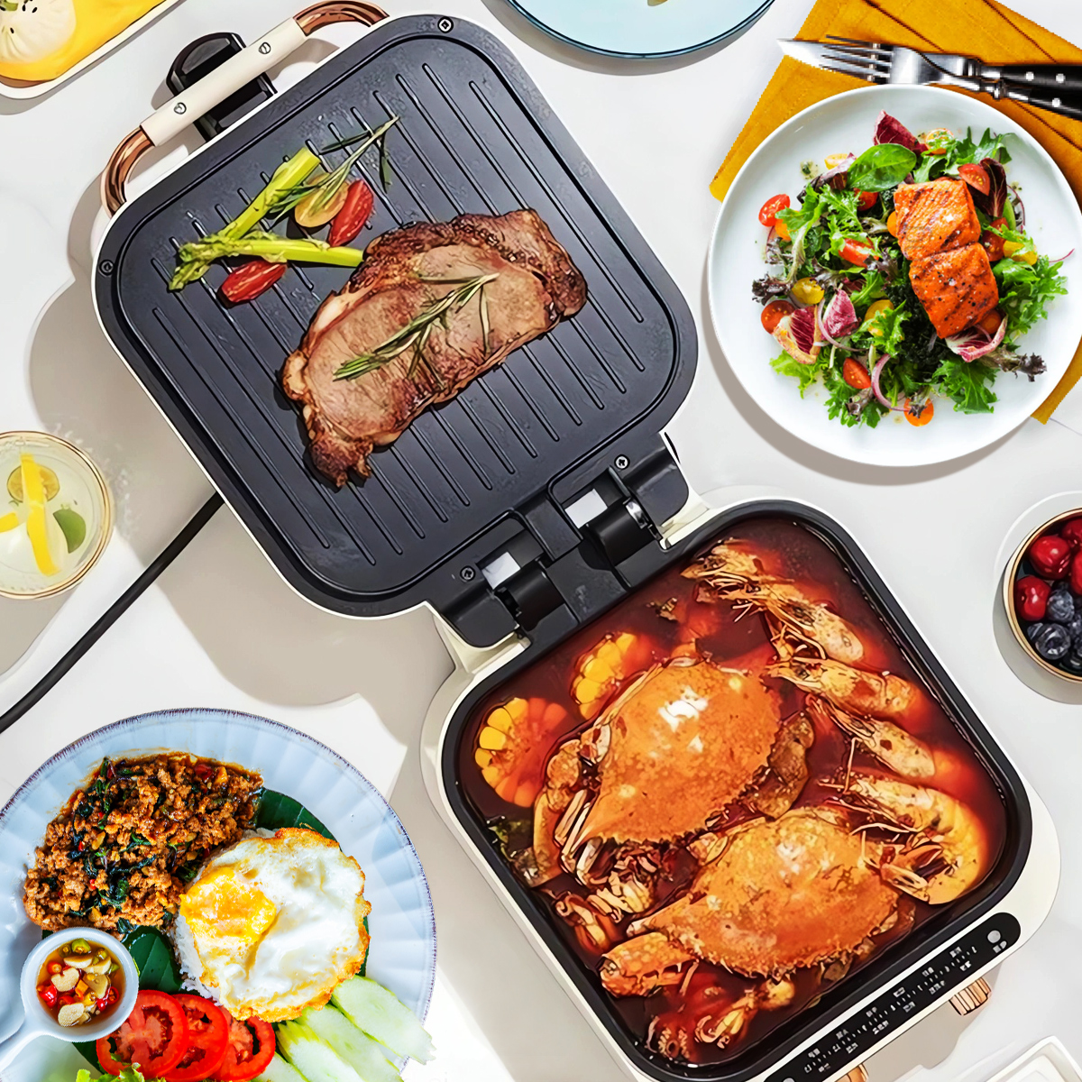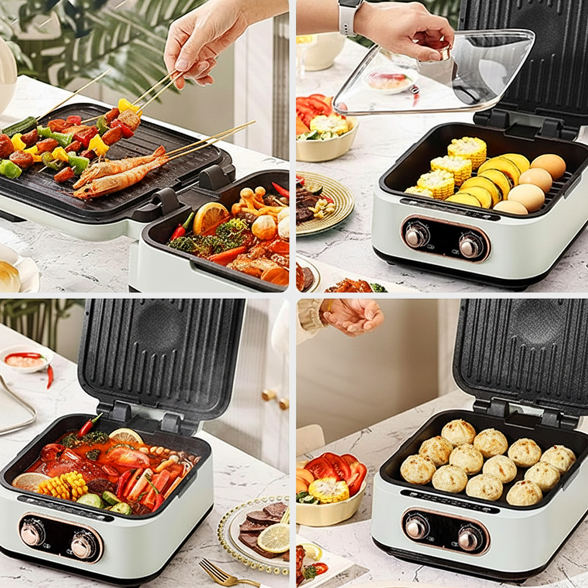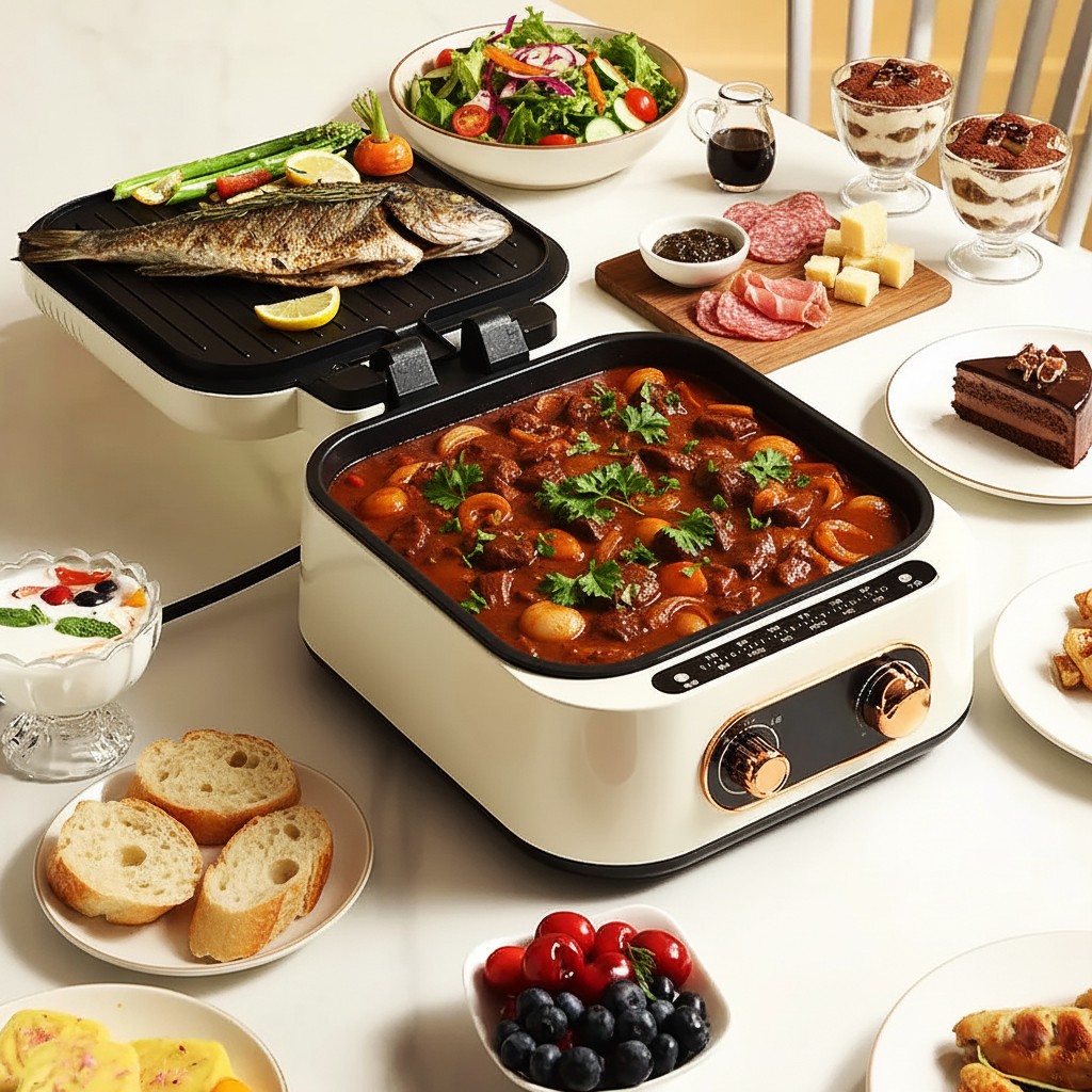 Ať už máš chuť na hot pot, zlatavé palačinky, grilované maso, mořské plody, křupavou rybu, smažené pochoutky nebo dokonce pražené ořechy – zvládne to všechno snadno a rychle.