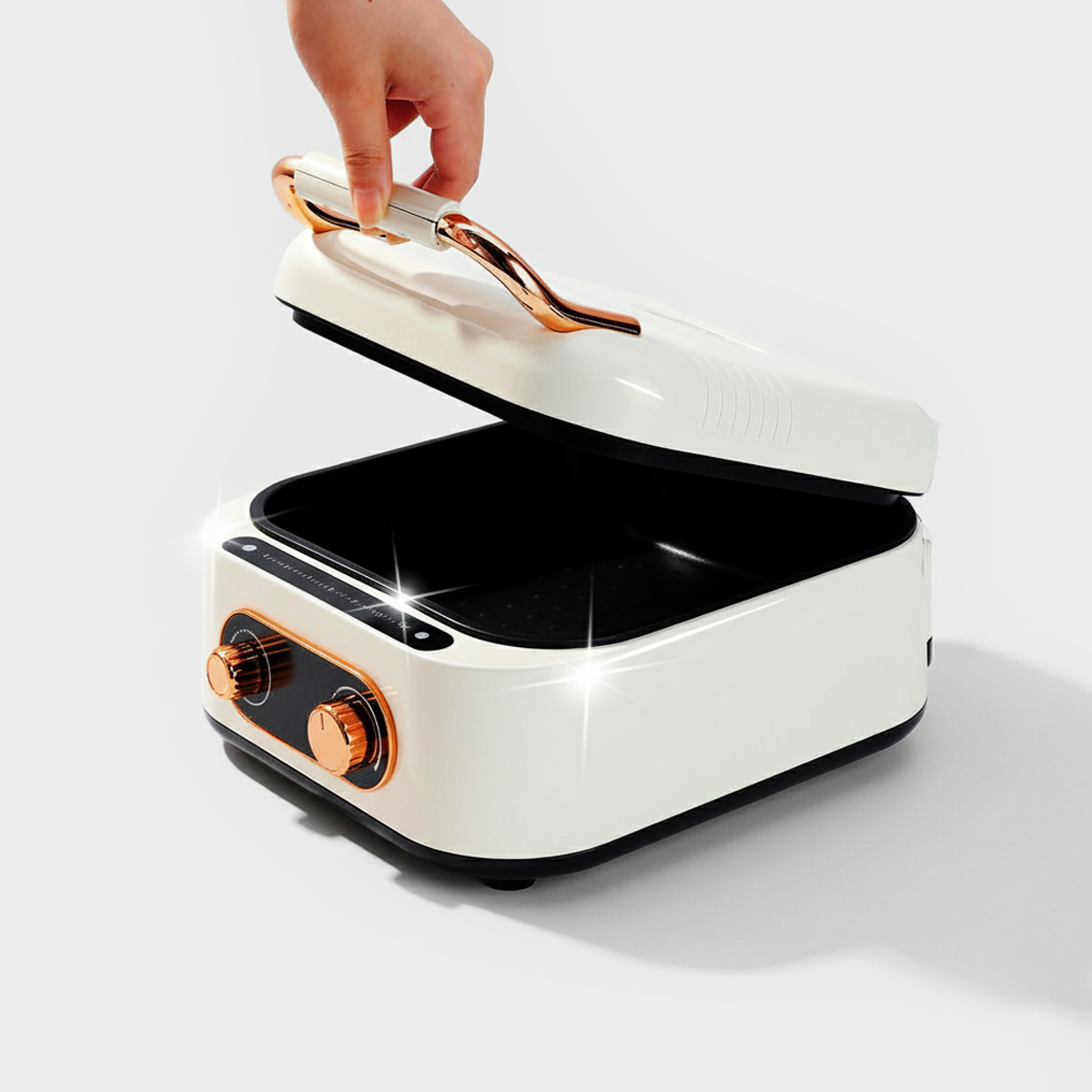 INSTAMO kombinuje dvě silné topné desky – jednu ve spodní části a druhou v horním víku – které mohou pracovat samostatně nebo společně.